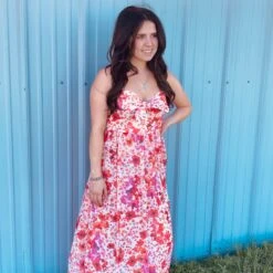 Red Floral Sless Dress